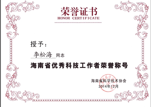 李松海研究員獲“海南省優(yōu)秀科技工作者”榮譽(yù)稱號