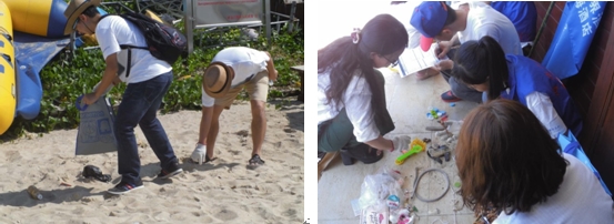 活動前,保護區管理處負責人為大家講解了海洋垃圾的危害及本次活動的意義,同時強調了凈灘時的注意事項。志愿者們待領取環保垃圾袋和手套等工具后,便開始分組行動,頂著炎炎烈日,不放過沙灘上每一個細微角落里的垃圾,“收獲”的喜悅溢于言表。經過1個多小時的凈灘行動,志愿者共清理了14公斤垃圾,并將垃圾分類填寫了ICC卡片,后續將進行分類處理。隨后,大家還參觀了保護區管理處的珊瑚展覽館。