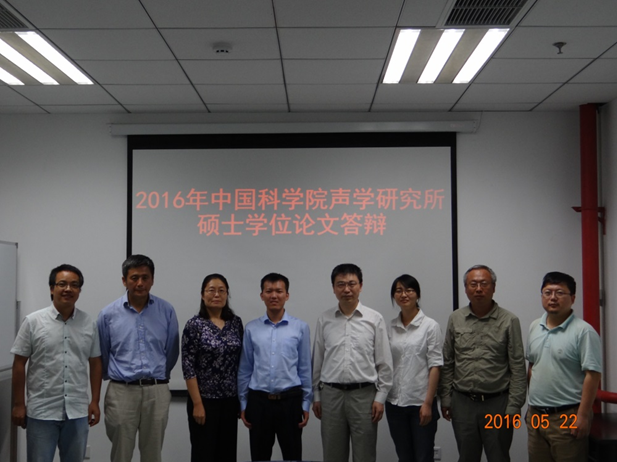 5月22日上午,我所2016屆碩士研究生黃曦、徐驍在導師張艾群、李松海的陪同下,在中國科學院聲學研究所參加了學位論文答辯。兩位學生依次向答辯委員會匯報各自論文的研究意義、基本內容和創新立點,答辯委員會就論文內容提問,由學生進行回答。經過緊張而有序的答辯程序后,答辯委員會認為:本次答辯的論文立題新穎,資料詳實,創新點多,充分反映了深海所2016級畢業生扎實的專業功底和良好的科研能力。兩位同學在所有參加答辯的學生中表現突出,獲得了中國科學院聲學研究所老師的高度評價。