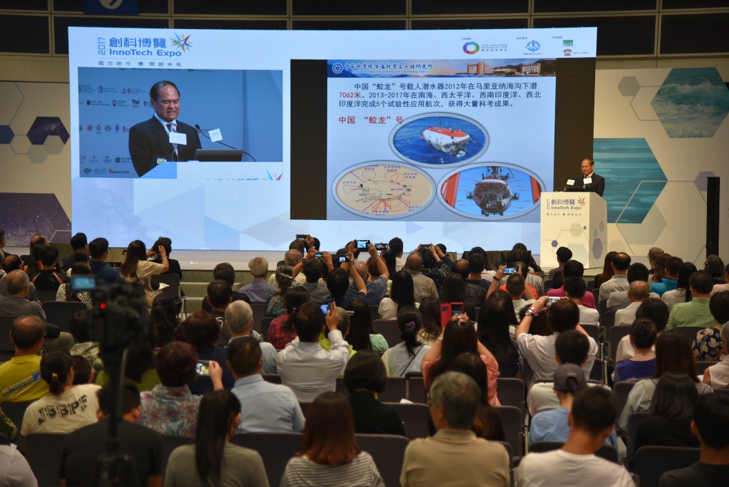 9月28日,應香港“創科博覽2017”專家論壇的邀請,中國科學院深海科學與工程研究所首席顧問劉心成于香港國際會展中心作了題為《中華民族揭秘深淵的偉大壯舉》的報告。報告從為什么要發展深海事業、我國載人潛水器海試及應用情況及我國深淵科考狀況三個方面對我國深海研究的情況進行了介紹,為香港市民奉上了一場深海科普盛宴,報告現場座無虛席。報告環節后,劉心成與香港理工大學的呂錦山教授、香港海事青年團新界二區皇家方舟號指揮官黃卓威少校、香港青年協會督導主任王茂松先生及香港青年協會創新科技獎學金2016得獎學生楊昊進行了嘉賓座談,對香港海上貿易的情況、海洋科技發展狀況、海洋科學的人才培養和公眾教育等方面進行了探討。
