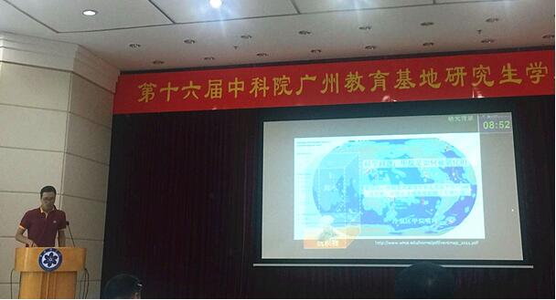 2017年11月8日,中國科學院廣州教育基地組織的第十六屆研究生學術報告會在廣州分院舉行。中國科學院深海科學與工程研究所博士研究生郭自曉和碩士研究生陳祉言參加了學術報告會。