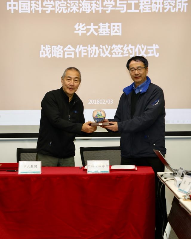2018年2月2日-3日,中國科學院深海科學與工程研究所與深圳華大生命科學研究院簽署戰略合作協議,共同致力于在海南打造全球深海生命研究高地,支撐海南深海科創中心建設。根據協議,雙方將共建深海生命研究院,共同發起國際深海生命科學計劃,推進海洋科技成果轉化,培養海洋生物、組學分析等研究領域復合型人才。華大基因董事長汪建表示,在基因科技助力深海研究的道路上,華大將提供全方位的技術支持,全力配合中科院深海所開展深海生物研究項目,建立世界領先的深淵生命跨學科體系,產出原創性、奠基性科研成果。中科院深海所所長表示,中科院深海所將發揮其深海探測、作業與取樣的優勢,結合華大全球領先的高通量測序與分析技術,可推動我國深海科技領域快速穩步發展,這對我國深海資源的發現與利用也具有重要的戰略意義。