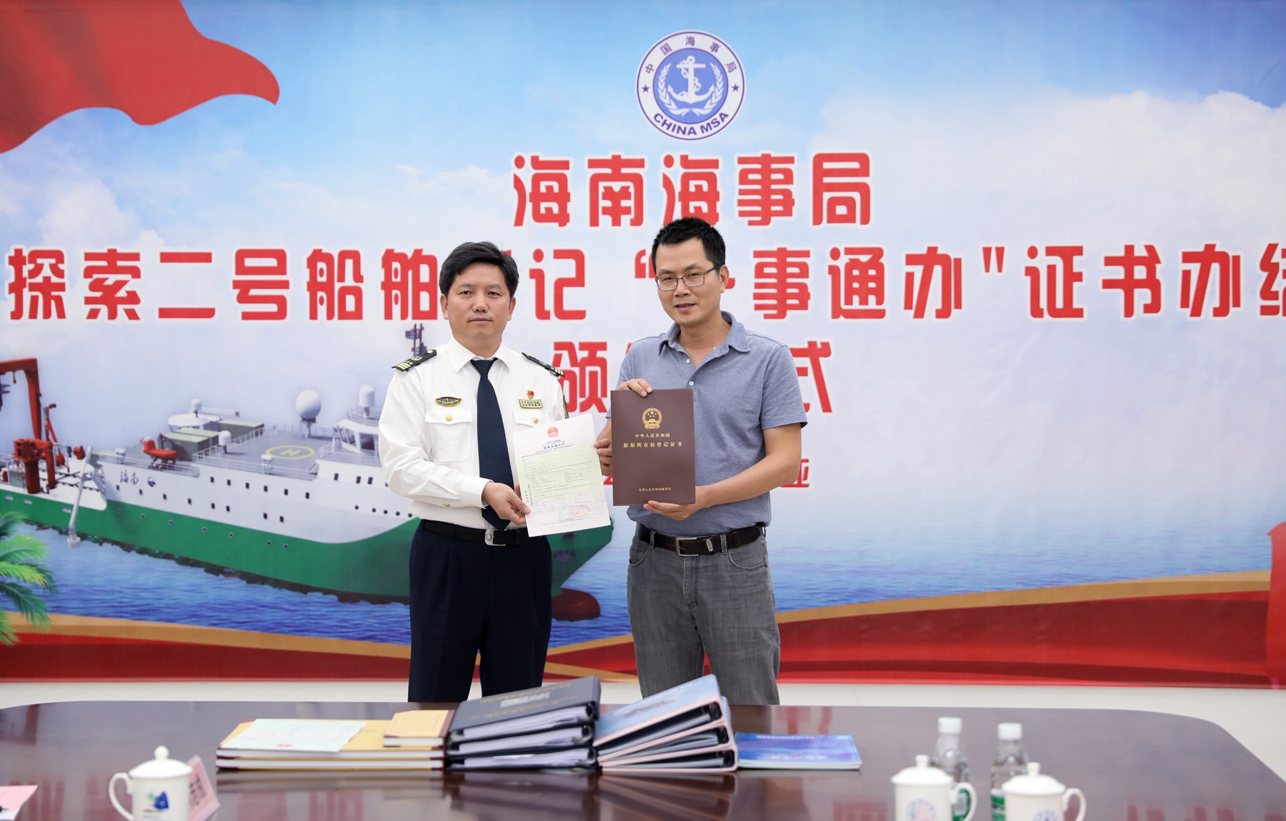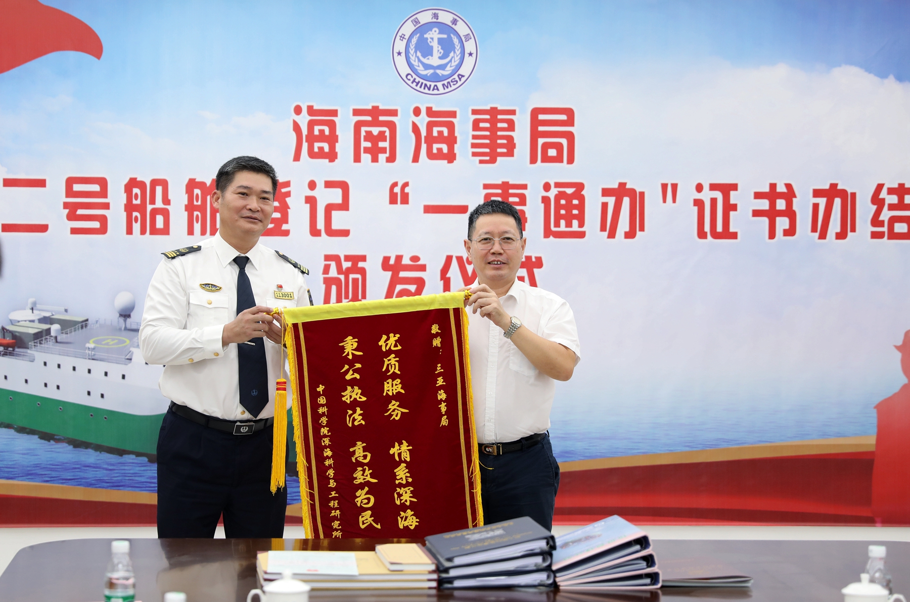 深海所“探索二號”科考船在海南獲得“身份”證明