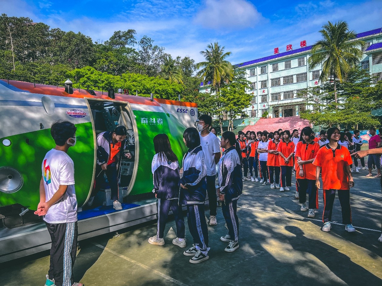5月18日,結(jié)合海南省十八屆科技活動(dòng)月活動(dòng)啟動(dòng)儀式,深海所在五指山市三月三廣場(chǎng)舉辦了“載人深潛”科考成果展,播放了“奮斗者”號(hào)海試紀(jì)錄片,向公眾介紹載人潛水器及其母船的研制與作業(yè)過(guò)程。19日,“奮斗者”號(hào)載人潛水器走進(jìn)五指山市紅星學(xué)校,科學(xué)部研究助理高映雪、工程部研究生冉明濤先后帶來(lái)《海洋哺乳動(dòng)物研究與保護(hù)》、《典型深海探測(cè)裝備》科普講座,五指山市紅星學(xué)校24個(gè)班級(jí)1030余名學(xué)生和五指山市熱海院附屬中學(xué)全體學(xué)生在線收看了科普講座直播。