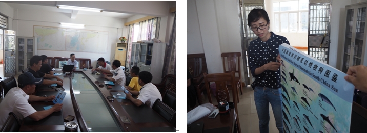 走訪期間,科研人員介紹了海洋哺乳動物與海洋生物聲學實驗室的研究工作,及在鯨類擱淺救助方面的專業特長,希望能夠在第一時間收到漁政監管部門獲悉的鯨類擱淺信息,發揮自身專業優勢協助做好海洋哺乳動物擱淺救助工作,建立長期合作關系。科研人員還向走訪單位分發了海洋哺乳動物與海洋生物聲學實驗室制作的《中國南海海洋哺乳動物物種圖鑒》、《海洋哺乳動物擱淺救護手冊》和《鯨類知識普及手冊》等科普資料。