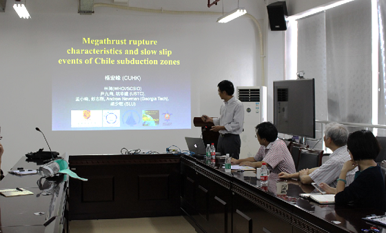 ????1月7日下午,應深海科學部吳時國研究員、田麗艷副研究員的邀請,香港中文大學理學院地球系統助理教授楊宏峰博士到我所進行學術交流訪問,并作了題為“Megathrust rupture characteristics and slow slip events of Chile subduction zones”的學術報告。