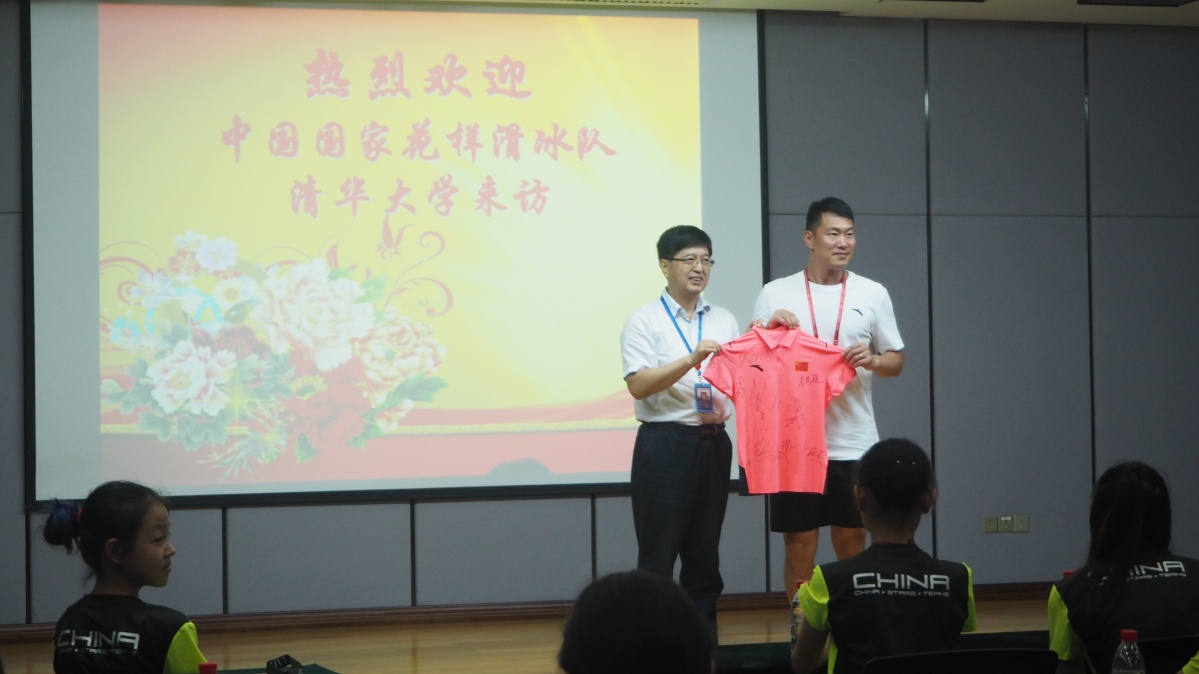 參觀結(jié)束后,來訪人員于10樓會議廳觀看“探索一號”科考船以及“深海勇士”號4500米載人潛水器的紀錄片。團委書記鄭麗平向來訪人員簡要介紹了深海所的發(fā)展歷程以及之后的研究展望。國家花樣滑冰隊于麗杰女士、清華三亞國際論壇管理中心高瑄主任以及國家花樣滑冰隊張昊隊長分別上臺講話。最后,代亮對活動進行了總結(jié)并代表深海所接收國家隊贈予的簽名紀念衫。