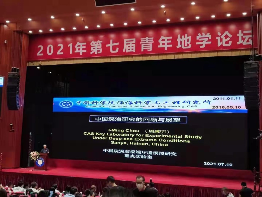 7月9-11日,中科院深海所深海極端環(huán)境模擬研究實(shí)驗(yàn)室主任周義明研究員赴貴陽(yáng)參加第七屆青年地學(xué)論壇,并受邀作題為“中國(guó)深海研究的回顧與展望”的大會(huì)報(bào)告。報(bào)告中,周義明講解了自己如何從臺(tái)灣到美國(guó)工作三十余年退休后再到中科院深海所所的求學(xué)、科研歷程。周義明向與會(huì)青年地球科學(xué)工作者介紹了深海所和深海極端環(huán)境研究實(shí)驗(yàn)室的建立和現(xiàn)狀,也分享了自己一路見證中國(guó)在深海和外太空研究領(lǐng)域技術(shù)性的突破的珍貴經(jīng)歷。