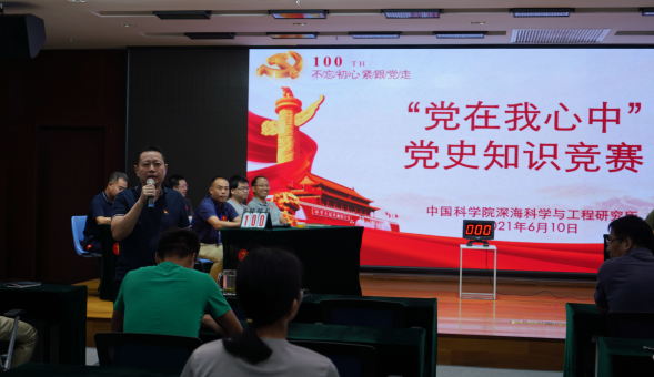 6月10日,為迎接建黨100周年,激勵全所員工學黨史、知黨情、感黨恩、跟黨走,引導全所員工認真學習貫徹習近平新時代中國特色社會主義思想,深海所黨委開展了“黨在我心中”黨史知識競賽活動,黨委委員、黨員代表、職工代表、研究生代表等參加會議。