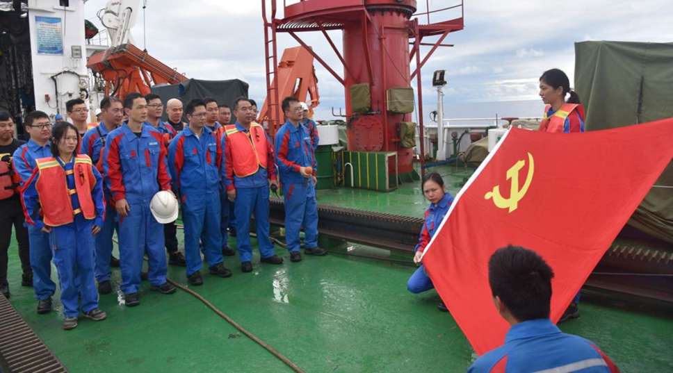 深海所黨委重視黨建工作和科研中心工作的融合,在科考和載人航次現場建立臨時黨組織,將黨旗插在深淵科考現場,讓黨徽照亮載人深潛征程,加強學習教育和思想發動,開展創先爭優,激發了廣大黨員和全體參航人員的斗志,為航次任務的圓滿完成提供了堅強有力的思想和組織保證,并探索了一條適合深淵科考和載人深潛工作的黨建之路。