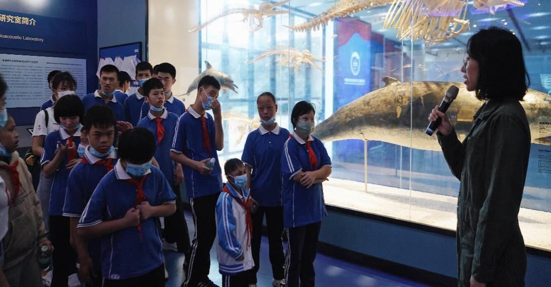 特殊教育學(xué)校師生參觀鯨豚館