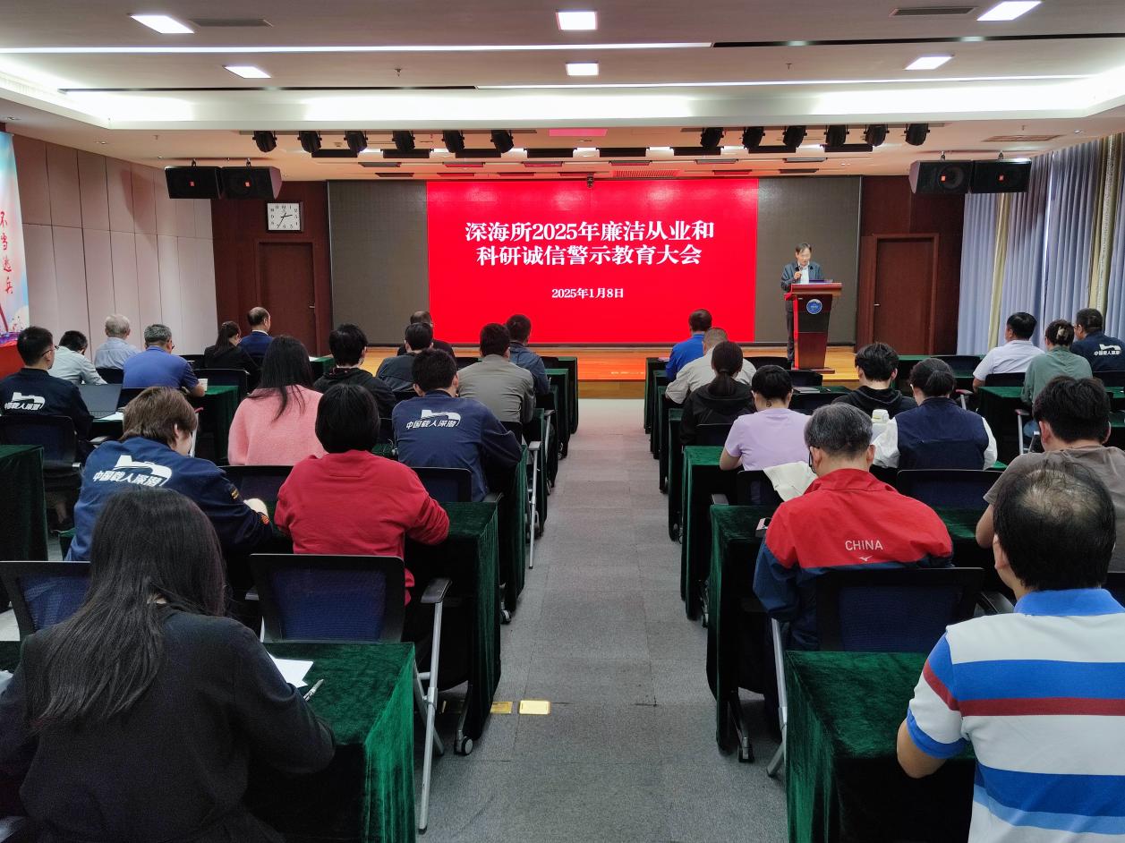 1月8日下午,深海所在綜合樓1003學術報告廳組織召開2025年廉潔從業和科研誠信警示教育大會。