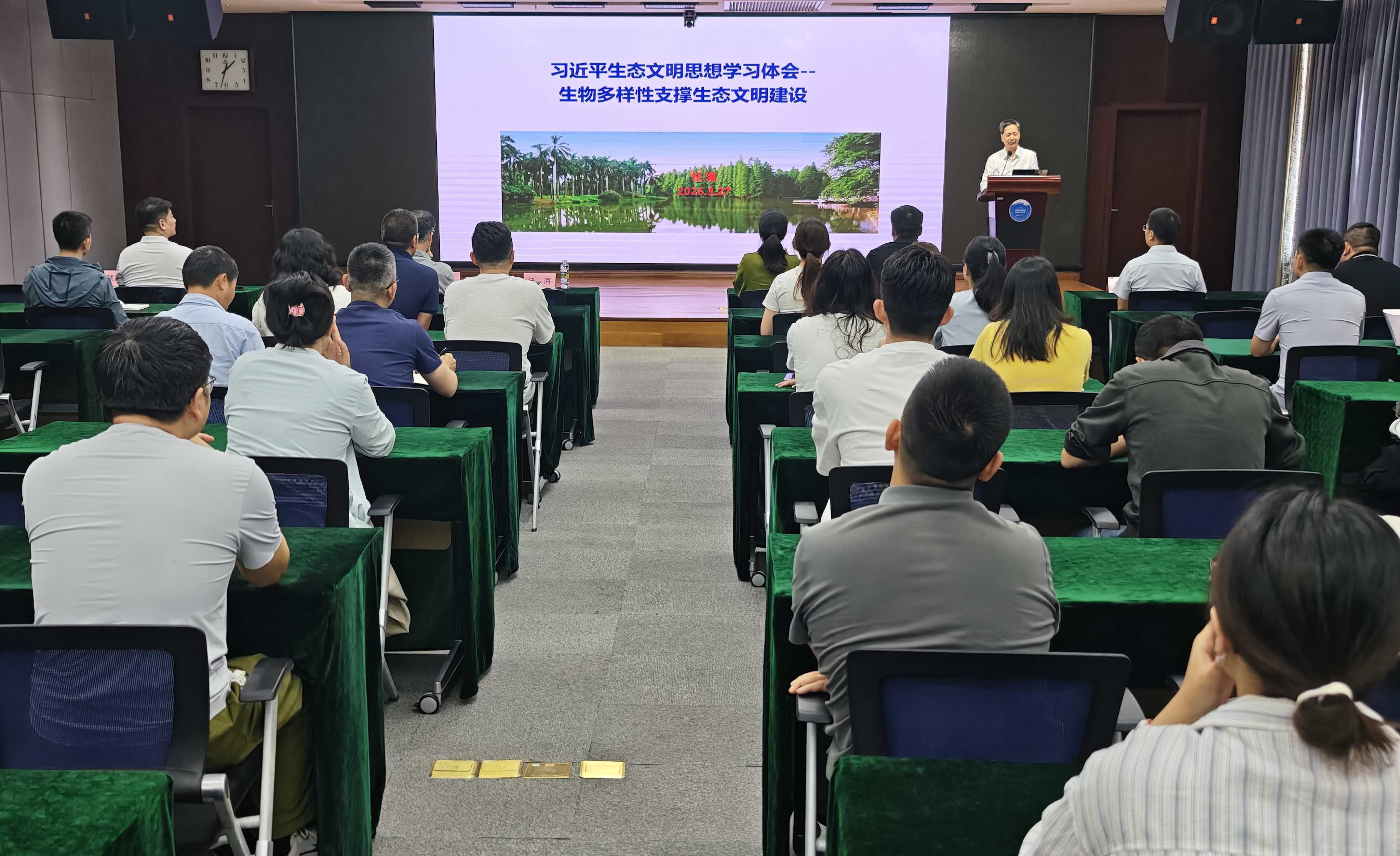 3月27日,由廣州分院分黨組主辦的“穗科燈塔大講堂”系列黨課第二講在深海所舉行。廣州分院院長(zhǎng)、分黨組副書記任海應(yīng)邀作《生態(tài)文明思想與生物多樣性》專題黨課報(bào)告。黨課由深海所黨委委員、副所長(zhǎng)唐古拉山主持,深海所職工黨員、學(xué)生等100余人參加學(xué)習(xí)。