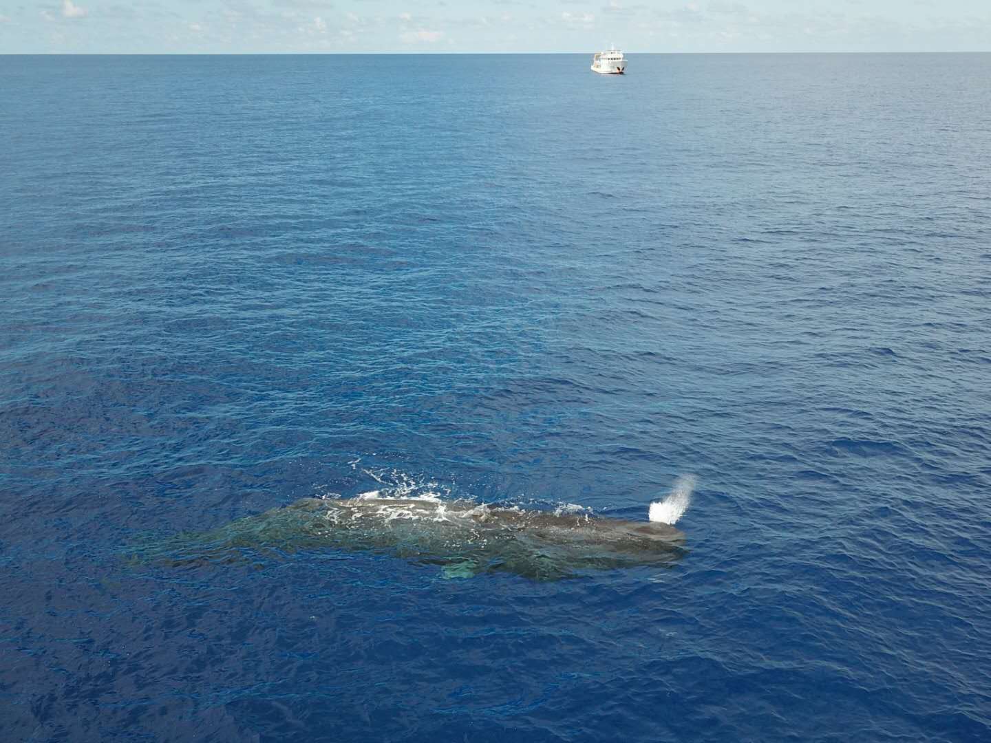 這是7月24日在南海某海域拍攝的抹香鯨(無人機照片)