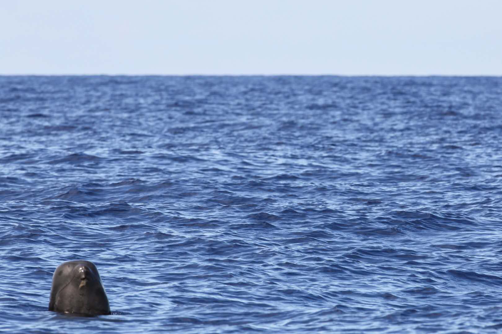 7月20日,一頭短肢領航鯨在南海某海域浮窺