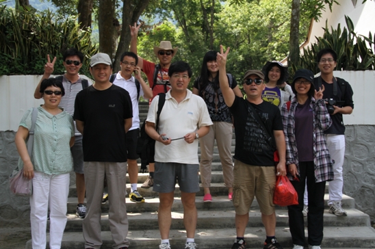 5月11日上午8時(shí)許出發(fā),經(jīng)過兩小時(shí)二十分的車程,登山隊(duì)伍順利抵達(dá)了五指山下。在真正看到素有海南島象征的五指山后,大家都被眼前的美景所陶醉,放眼望去,群山環(huán)繞,云海茫茫。在觀山臺(tái)正面眺望五指山,五峰并列如擎天五指,在云海中時(shí)隱時(shí)現(xiàn),盡收眼底。隨著一聲令下,大家迅速收拾起陶醉的心情,開始向頂峰攀登。景區(qū)內(nèi)古樹參天,巨石嵯峨,藤蘿密布,奇花異草隨處可見,大家一邊登山,一邊欣賞著美景,心情格外的舒暢歡愉。途中歡聲笑語不時(shí)響起,團(tuán)隊(duì)氣氛輕松融洽,在一些陡峭難行的路段,大家相互幫助,你托我扶,處處體現(xiàn)著同事間的關(guān)愛和團(tuán)隊(duì)協(xié)作精神。隨著時(shí)間的推移,腳力好的隊(duì)員沖鋒在前,已尋不到蹤影。午后一點(diǎn),天空逐漸陰了下來,不時(shí)有點(diǎn)點(diǎn)雨星落下,看著遠(yuǎn)遠(yuǎn)的山峰,腳下盤根錯(cuò)節(jié),蜿蜒陡峭的山路,為了安全起見,大家決定簡單休整后下山。當(dāng)聚在半山腰,圍坐在一起,盡情領(lǐng)略著熱帶原始森林的秀美,享受著精美的午餐時(shí),大家忘卻了登山的勞頓,說說笑笑,儼然成了這美景中的一部分。沖在前面的兩名隊(duì)員遲遲未能回歸,經(jīng)過一番聯(lián)系,電話那頭傳來興奮、驚喜地聲音,原來他們已經(jīng)登上了最高峰……下午四時(shí)許,12名隊(duì)員在回程的路上熱鬧的交流著登山的感受,兩名登到頂峰的隊(duì)員,更是激動(dòng)興奮地給大家講頂峰奇特瑰麗的風(fēng)景,聽得大家仿佛置身其中一斑。