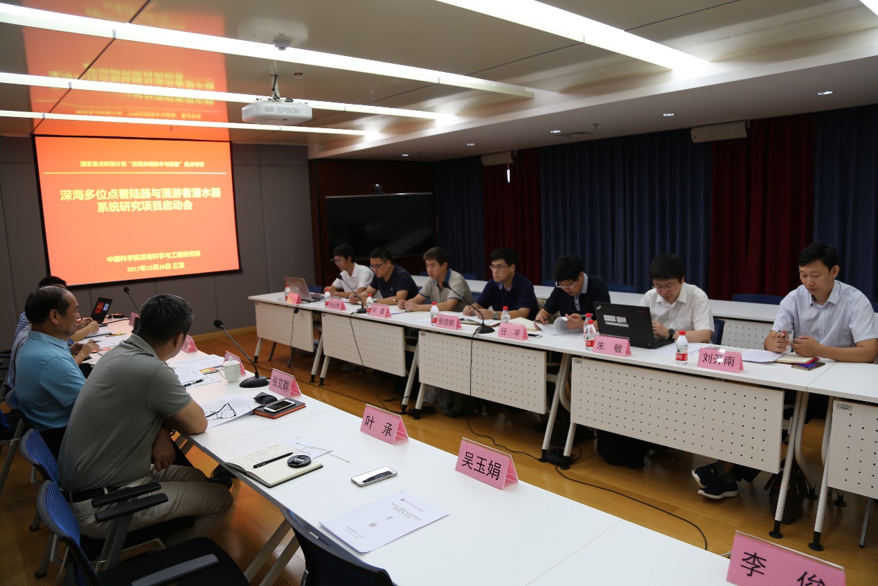 2017年10月26日,中國(guó)科學(xué)院深海科學(xué)與工程研究所在三亞組織召開(kāi)了國(guó)家重點(diǎn)研發(fā)計(jì)劃“深海關(guān)鍵技術(shù)與裝備”重點(diǎn)專項(xiàng)“深海多位點(diǎn)著陸器與漫游者潛水器系統(tǒng)研究”項(xiàng)目啟動(dòng)會(huì)。項(xiàng)目責(zé)任專家、項(xiàng)目參研單位代表共計(jì)20人參加了會(huì)議。