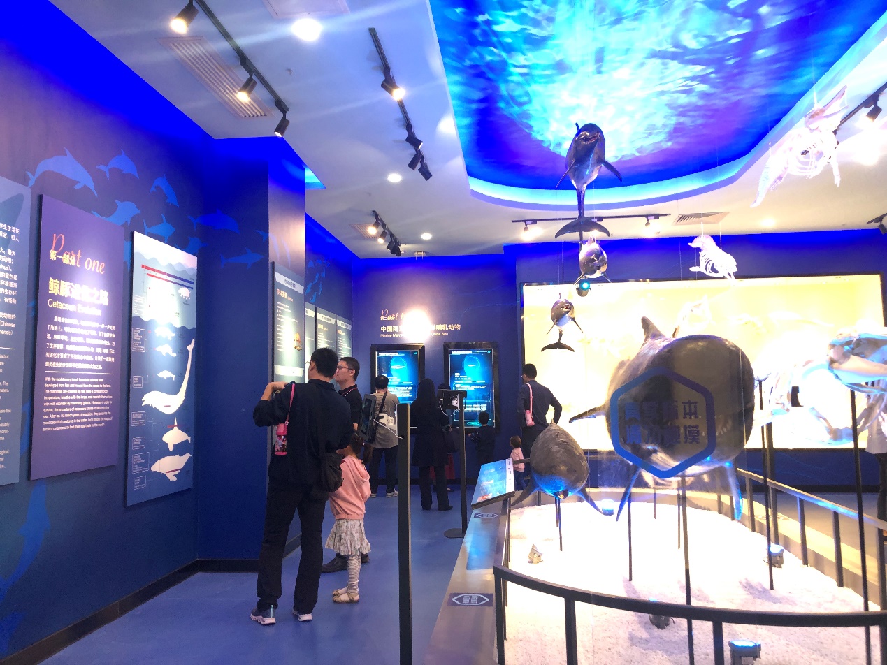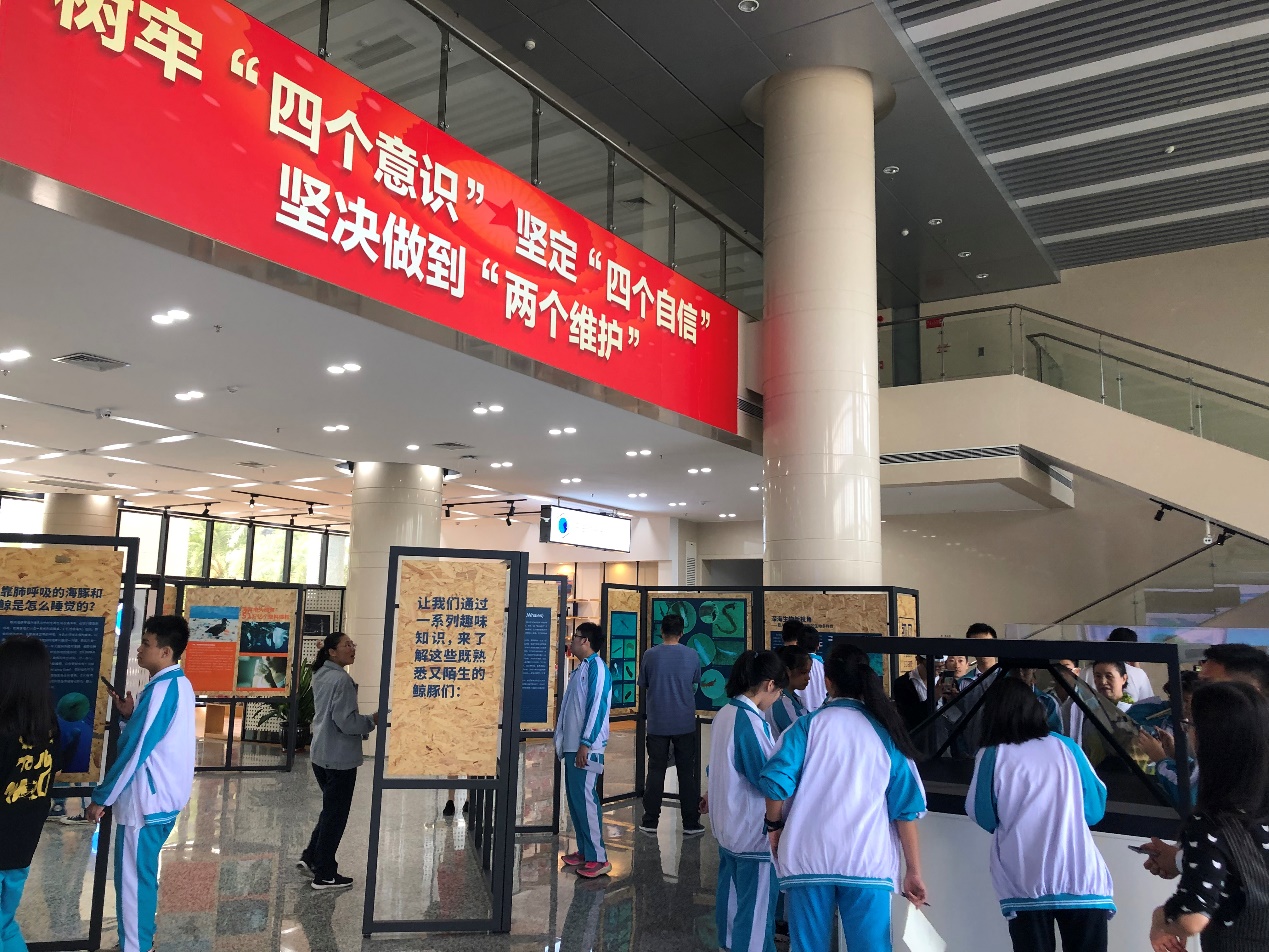 開放活動位于深海所主樓一樓展區(qū),包括海洋生態(tài)科普展,鯨豚標本館以及深海科考紀實片觀影區(qū)三個展區(qū)。在海洋生態(tài)科普展區(qū),通過“初見”“窘境”展板,循序漸進的介紹人類目前已知的海洋生物以及他們生存所面臨的捕撈、屠戮及白色污染等問題,最后,通過“攜手”展區(qū),介紹三亞現有的海洋保護組織,呼吁全民參與,共同努力,攜手保護海洋生物,保護海洋生態(tài)環(huán)境。在該展區(qū)還首次通過全息影像技術向觀眾生動的展示了來自8000米水深的大型生物——深海獅子魚,并通過滾動播放旁白的方式科普獲取獅子魚樣品數據的航次及深淵著陸器等詳細信息,讓大家對深海深淵科考有了更加深入的了解。鯨豚標本館本次共展出8個物種22副標本,利用鯨豚聲音模擬演示、多媒體投影、VR虛擬現實體驗等多個手段,為參觀者從三維的視角講述鯨和海豚的進化歷史以及各個物種的特征信息,幫助參觀者了解鯨豚動物生活習性以及擱淺危害。值得一提的是,今年6月上旬,經多方努力救治仍不幸死亡的擱淺領航鯨“萌丫”的遺體,經深海所鯨豚標本館積極爭取,通過水生野生動物保護地方政府主管部門同意, 已被做成皮質標本和骨骼標本,在本次公眾開放活動中一并展出。當時參加救護的公益組織和社會團體代表,專程來到鯨豚標本館,以獨特的方式跟“萌丫”道別。