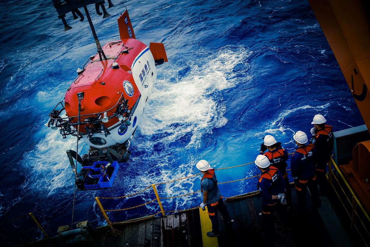 正在進行回收作業的深海勇士號(張桅供圖)