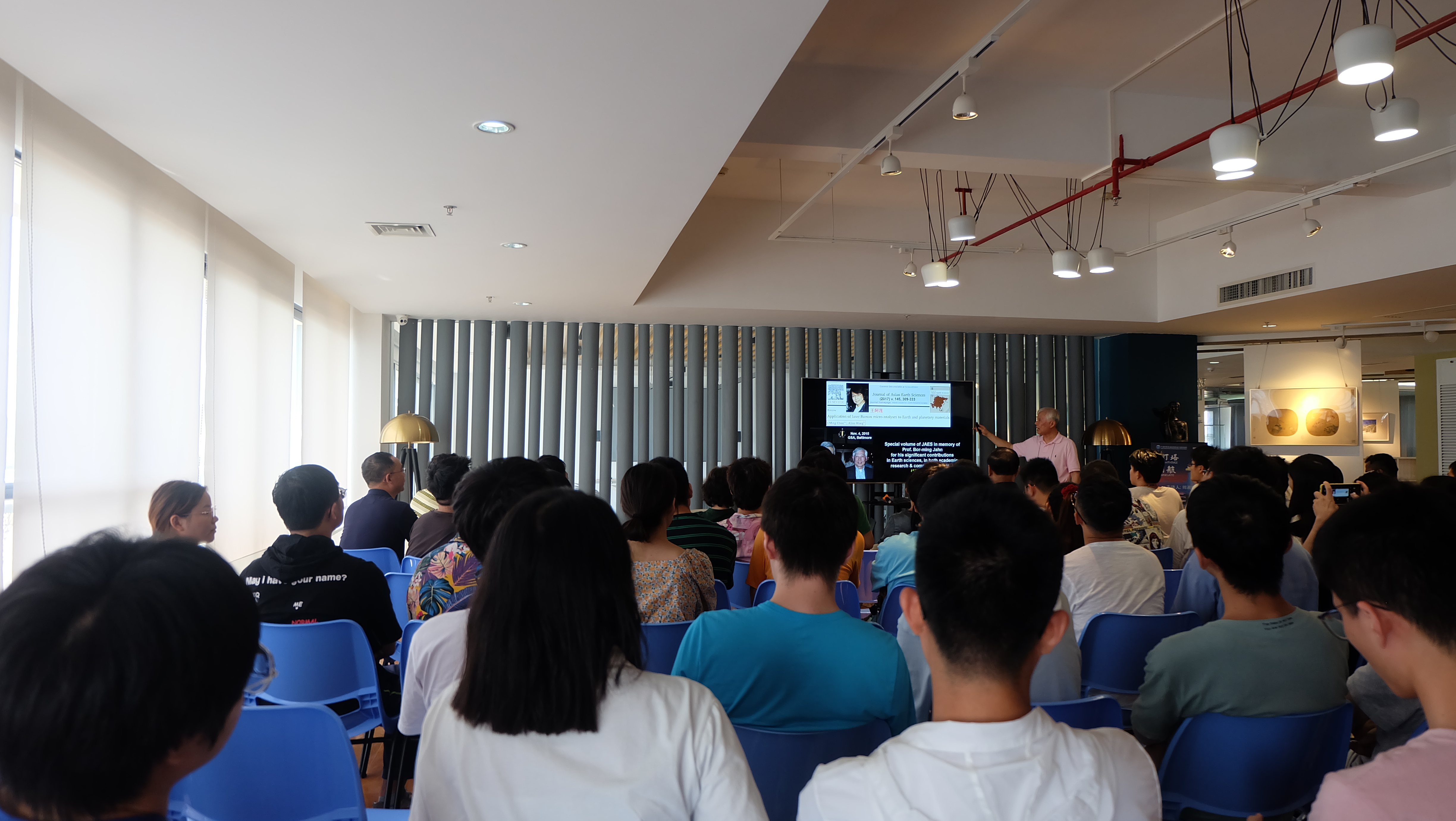 隨后,周義明介紹了自己的研究方向,并講述了多位地球化學領域專家做出的卓越貢獻。他指出,科研人員不能只拘于一個小小的研究領域,應當廣泛涉獵,提升能力。同時,他也以所在的研究團隊一度缺少研究經費為例,提醒科研人員要有危機感,要把有限的經費用在對社會有貢獻的科研項目上。另外,周義明還分享了自己見證中國在深空深海研究領域獲得重大突破的珍貴經歷。