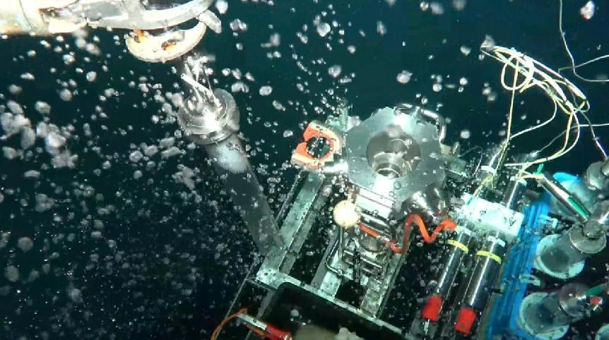 該航次在完成深海原位實(shí)驗(yàn)室海試任務(wù)的同時(shí),通過“深海勇士”號(hào)在南海冷泉區(qū)開展了冷泉流體滲漏的生態(tài)環(huán)境效應(yīng)科考,獲取了“海馬”冷泉區(qū)以及其東北方向新發(fā)現(xiàn)的2處活動(dòng)冷泉區(qū)一批重要的流體、沉積物和生物樣本,并通過深海原位實(shí)驗(yàn)室對(duì)其中的一處滲漏口進(jìn)行了流體組分、微生物群落等的72小時(shí)原位觀測(cè)。
