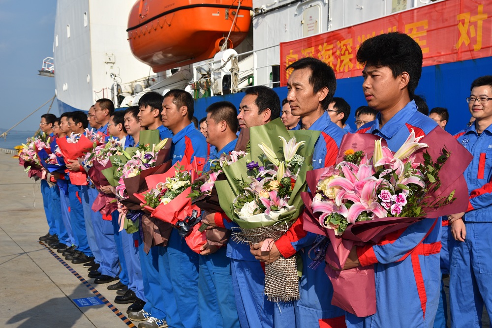 23日上午8:30,中國科學(xué)院丁仲禮副院長、海南省科技廳副廳長王利生、科技部、國家海洋局北海分局、三亞市等有關(guān)部門和單位領(lǐng)導(dǎo)、參航單位代表、科考隊員家屬代表在三亞港碼頭歡迎科考隊凱旋。