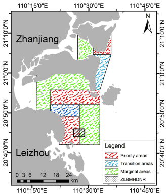 圖1 (左)中華白海豚重要棲息地(右)根據(jù)調(diào)查數(shù)據(jù)建議的中華白海豚三種保護區(qū)設置