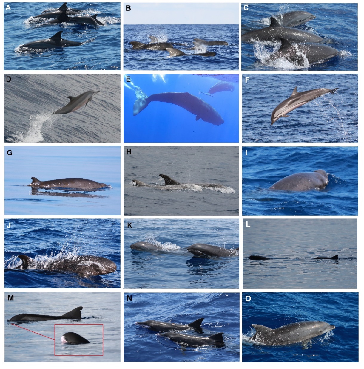 圖1?南海鯨類科考航次記錄的多種深潛/遠海鯨類物種
