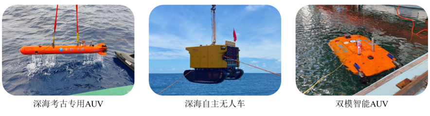 立足海洋科學(xué)研究、安全保障和水下工程作業(yè)需求,聚焦深海自主無人裝備研發(fā)及其智能控制技術(shù)研究工作。以實際應(yīng)用需求為牽引,通過新型裝備研發(fā)和快速升級迭代,逐步打造深海自主無人裝備集群,為構(gòu)建實質(zhì)性水下無人作業(yè)能力體系提供支撐。圍繞深海考古探測作業(yè)、海底長期移動觀測、復(fù)雜區(qū)域目標(biāo)探查、有人/無人裝備協(xié)同以及深海裝備的智能運動控制、作業(yè)環(huán)境感知、自主目標(biāo)識別、運行狀態(tài)監(jiān)測、虛擬現(xiàn)實測試等裝備技術(shù)和理論方法開展研究,研制了深海考古專用AUV、深海自主無人車、雙模智能AUV等系列化深海自主無人裝備。
